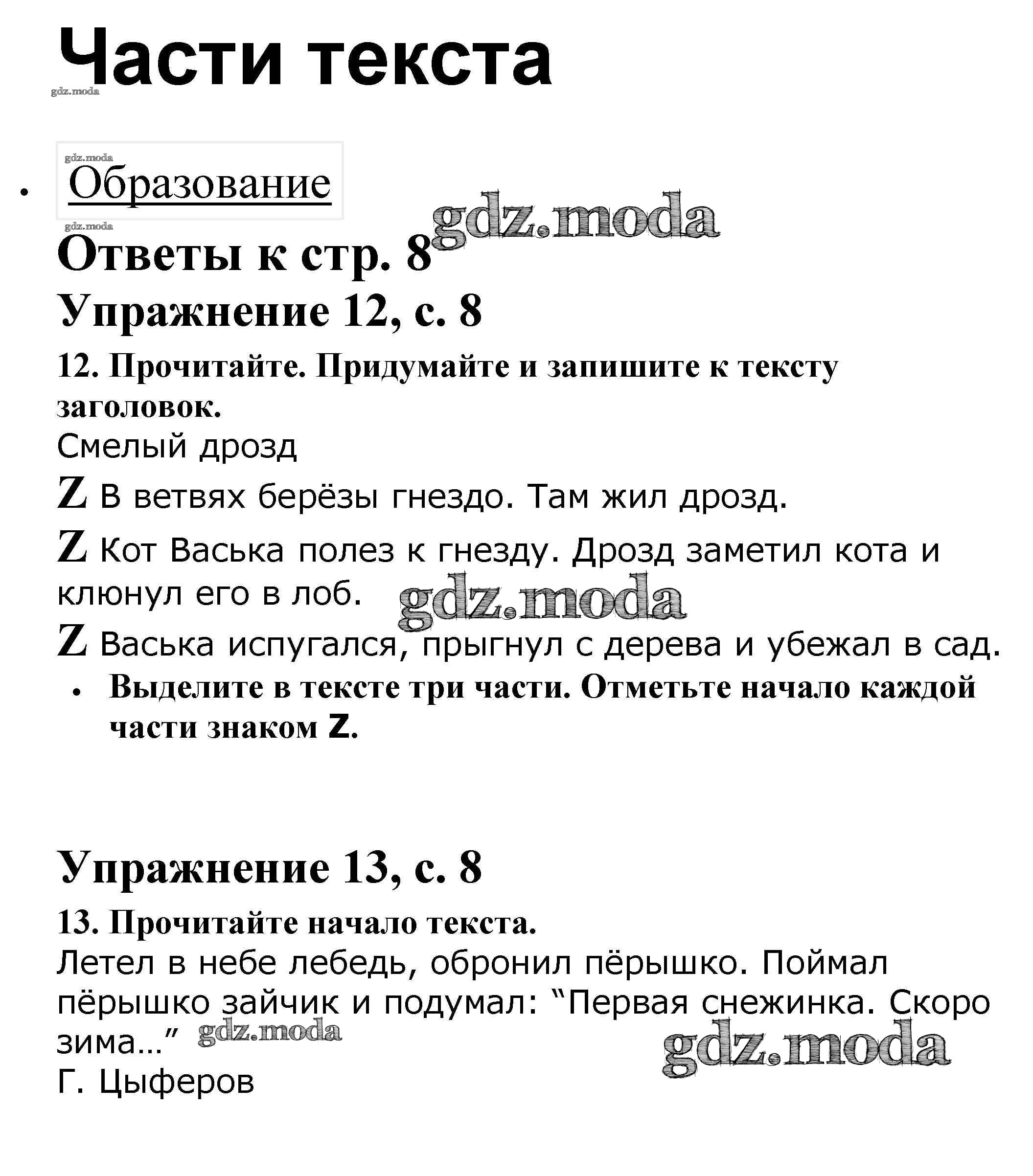 ОТВЕТ на задание № 8 Рабочая тетрадь по Русскому языку 2 класс Канакина Школа России