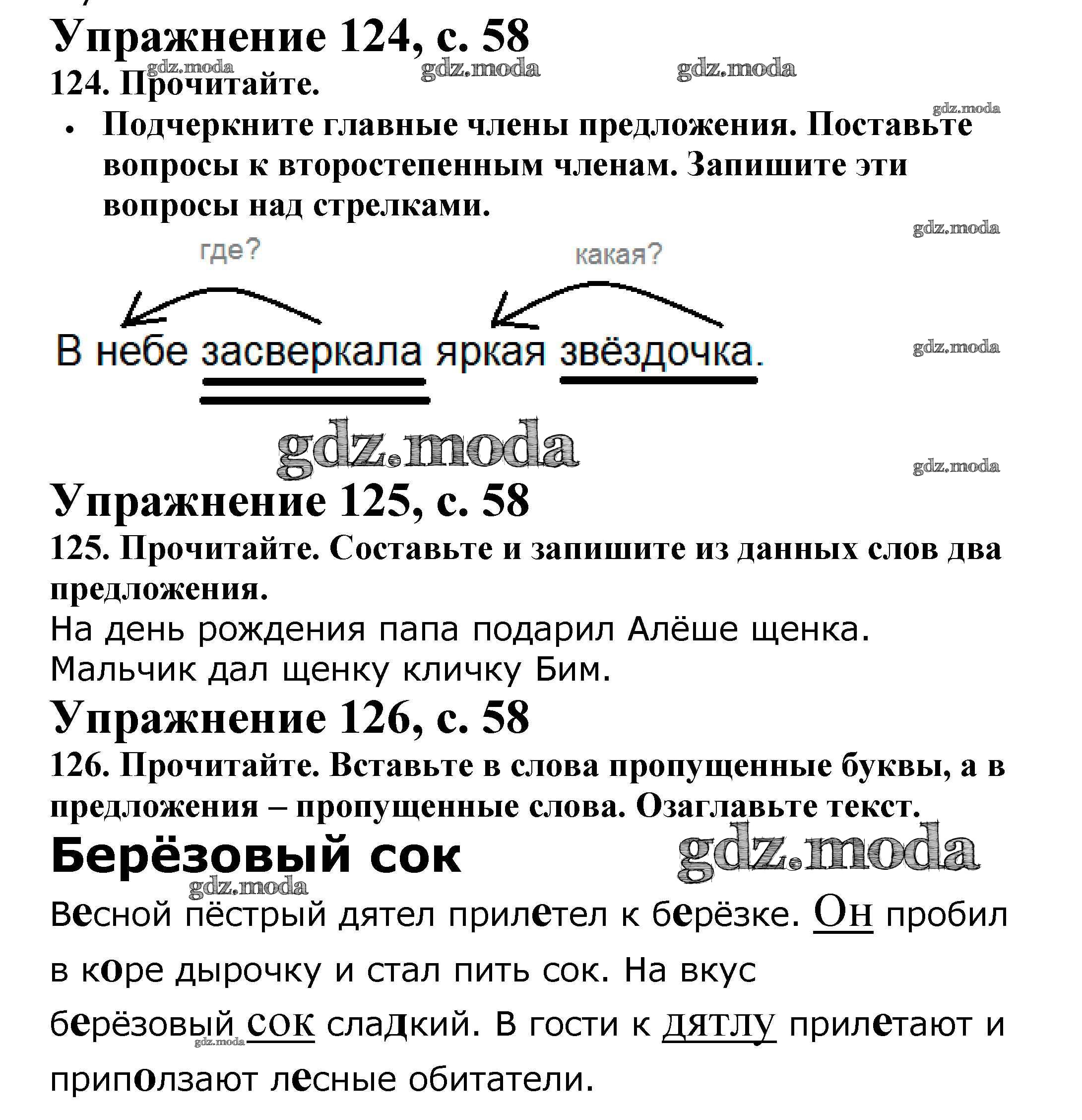 ОТВЕТ на задание № 58 Рабочая тетрадь по Русскому языку 2 класс Канакина Школа России