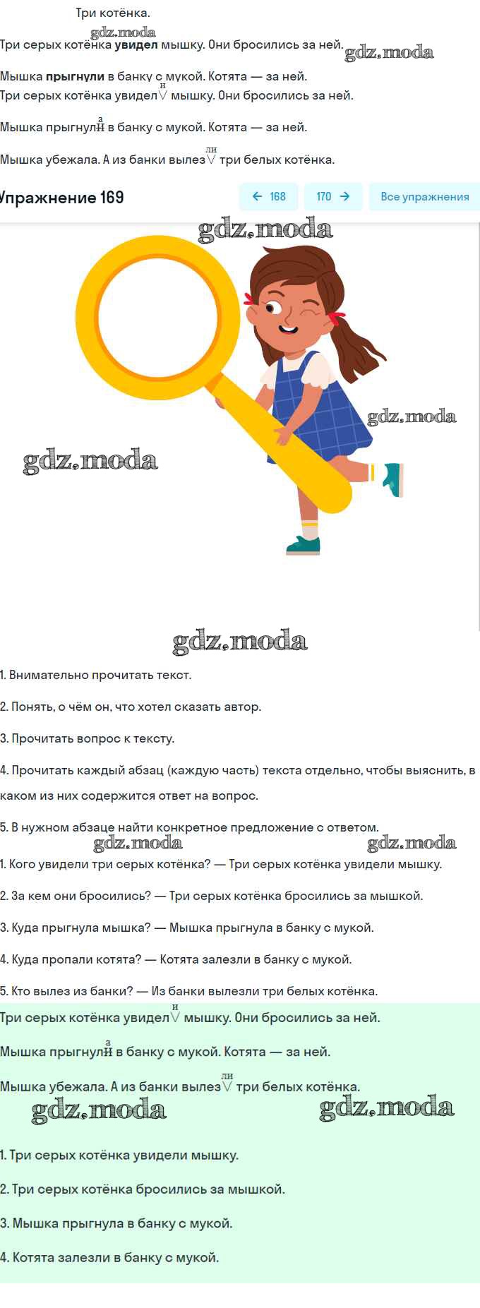 ОТВЕТ на задание № 169 Рабочая тетрадь по Русскому языку 2 класс Климанова Перспектива