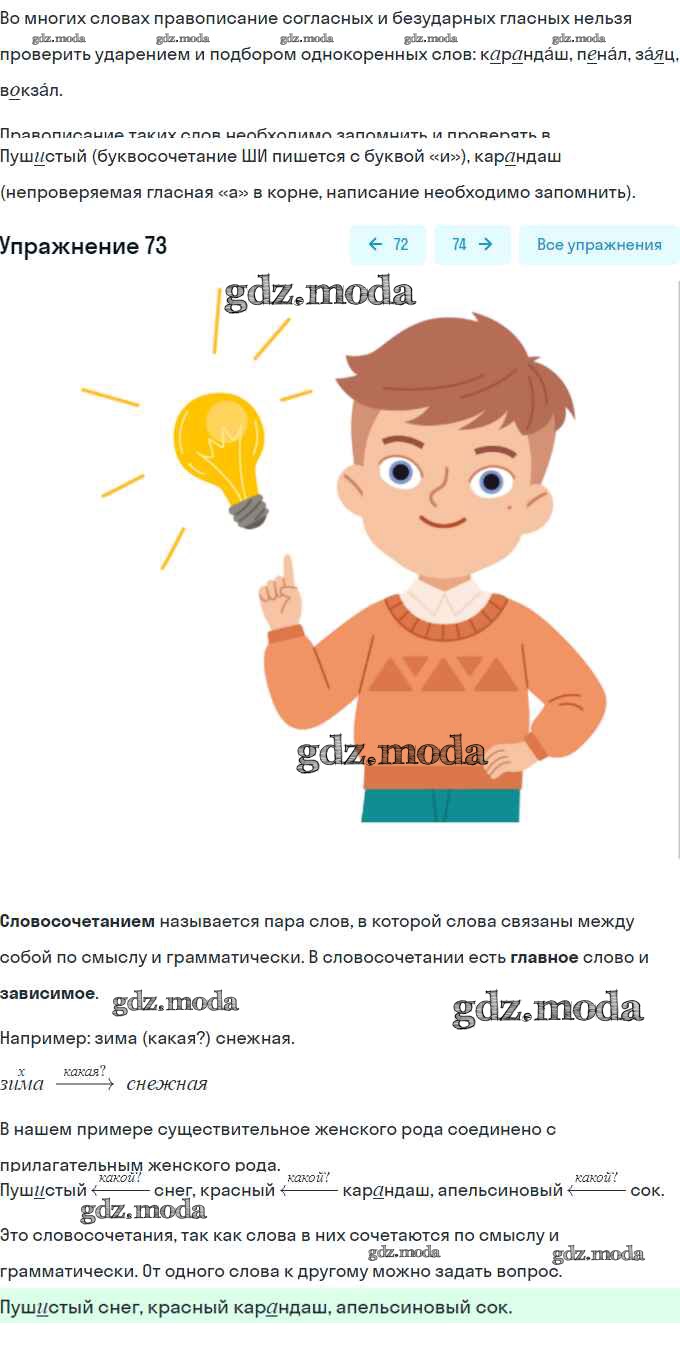 ОТВЕТ на задание № 73 Рабочая тетрадь по Русскому языку 2 класс Климанова Перспектива