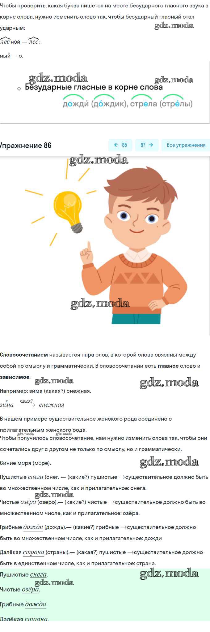 ОТВЕТ на задание № 86 Рабочая тетрадь по Русскому языку 2 класс Климанова Перспектива