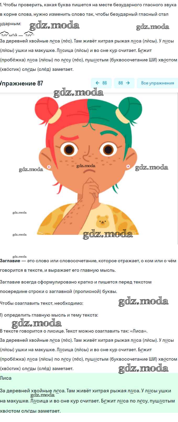 ОТВЕТ на задание № 87 Рабочая тетрадь по Русскому языку 2 класс Климанова Перспектива