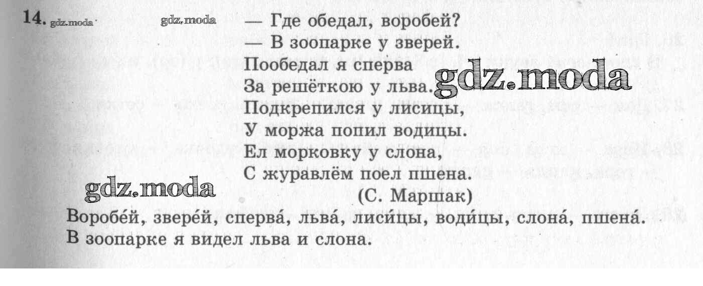 ГДЗ решение к заданию № 14 Русский язык 2 класс Рамзаева Т.Г. Дрофа 2011 Часть 1, Часть 2 ФГОС бесплатно на гдз.мода!