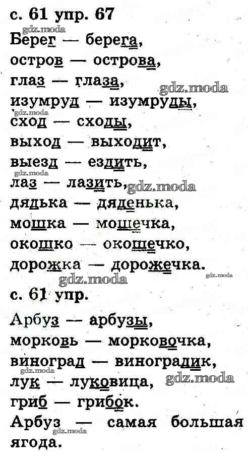 ГДЗ решение к заданию № 67 Русский язык 2 класс Рудяков Грамота 2012 бесплатно на гдз.мода!