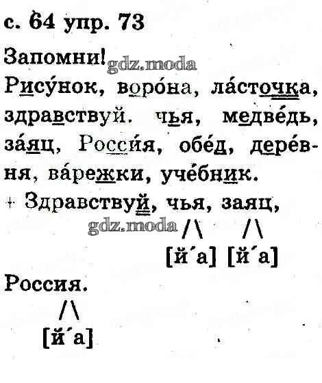 ГДЗ решение к заданию № 73 Русский язык 2 класс Рудяков Грамота 2012 бесплатно на гдз.мода!