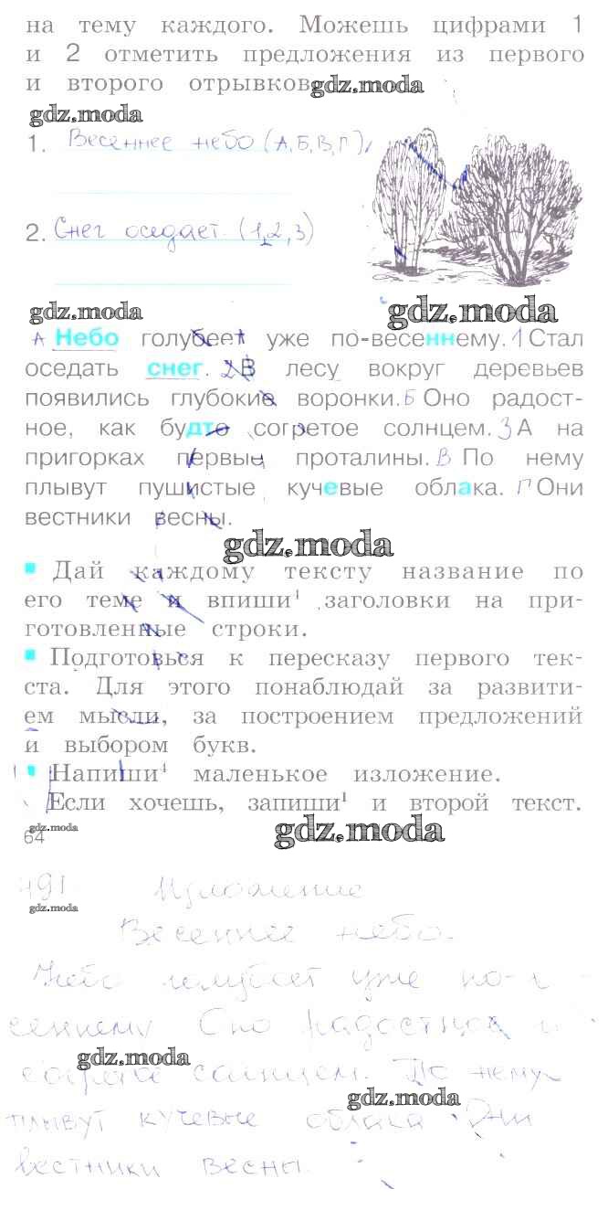 ОТВЕТ на задание № 64 Рабочая тетрадь по Русскому языку 2 класс Соловейчик Гармония