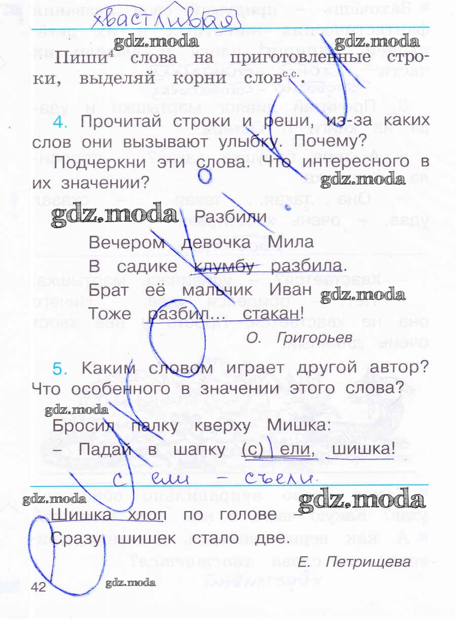 ОТВЕТ на задание № 42 Рабочая тетрадь по Русскому языку 2 класс Соловейчик Гармония