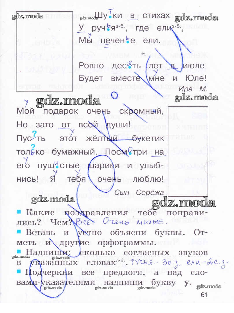 ОТВЕТ на задание № 61 Рабочая тетрадь по Русскому языку 2 класс Соловейчик Гармония