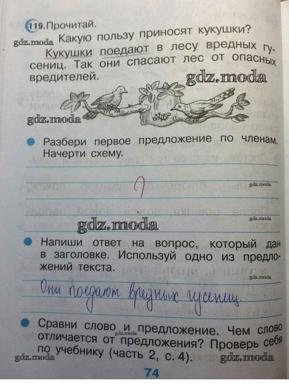 ГДЗ решение к заданию № 74 Русский язык 2 класс Тетрадь для упражнений Рамзаева Т.Г. Дрофа 2018 ФГОС бесплатно на гдз.мода!