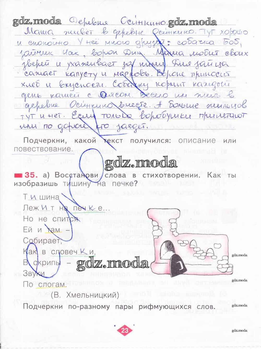 ГДЗ решение к заданию № 23 Русский язык 2 класс рабочая тетрадь Яковлева С.Г. Фёдоров 2015 Часть 1, Часть 2, Часть 3, Часть 4 ФГОС бесплатно на гдз.мода!