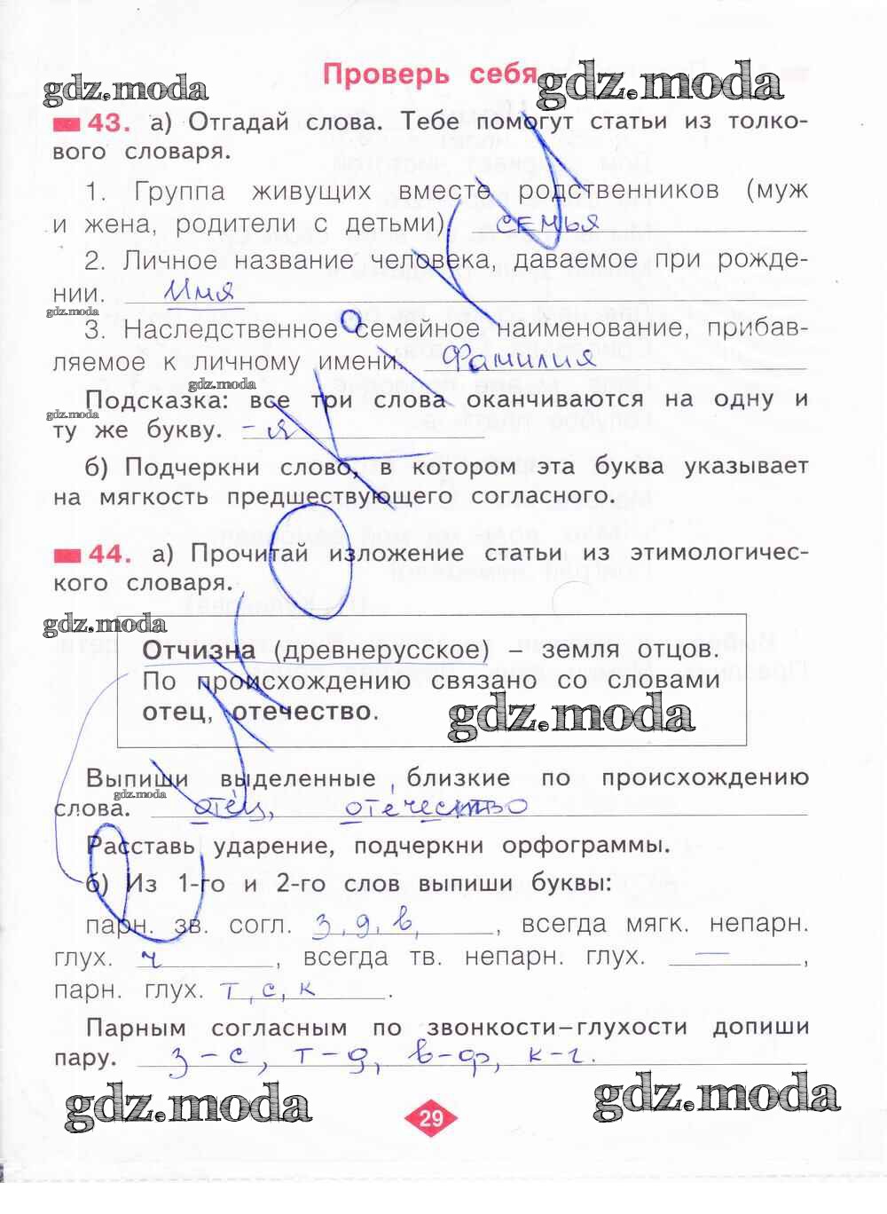 ГДЗ решение к заданию № 29 Русский язык 2 класс рабочая тетрадь Яковлева С.Г. Фёдоров 2015 Часть 1, Часть 2, Часть 3, Часть 4 ФГОС бесплатно на гдз.мода!