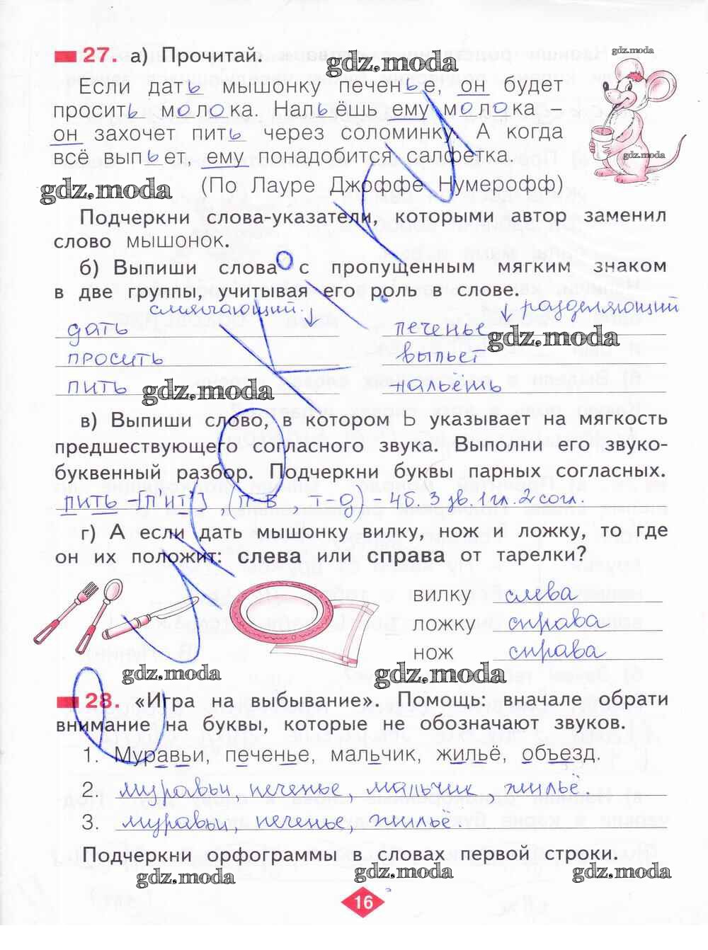 ГДЗ решение к заданию № 16 Русский язык 2 класс рабочая тетрадь Яковлева С.Г. Фёдоров 2015 Часть 1, Часть 2, Часть 3, Часть 4 ФГОС бесплатно на гдз.мода!