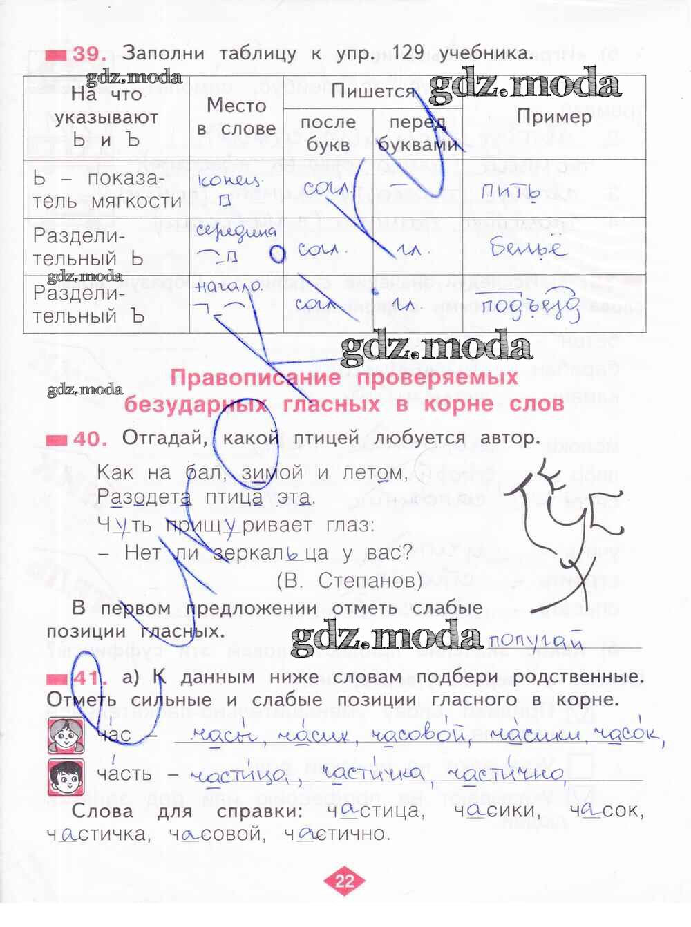 ГДЗ решение к заданию № 22 Русский язык 2 класс рабочая тетрадь Яковлева С.Г. Фёдоров 2015 Часть 1, Часть 2, Часть 3, Часть 4 ФГОС бесплатно на гдз.мода!