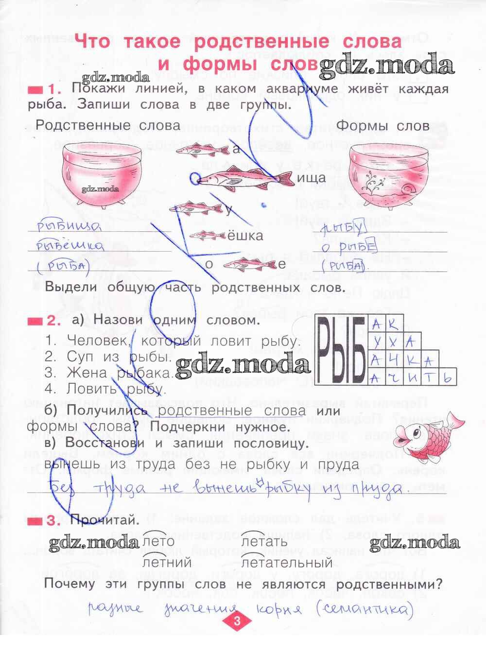 ГДЗ решение к заданию № 3 Русский язык 2 класс рабочая тетрадь Яковлева С.Г. Фёдоров 2015 Часть 1, Часть 2, Часть 3, Часть 4 ФГОС бесплатно на гдз.мода!