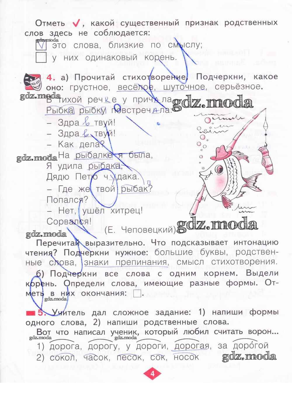 ГДЗ решение к заданию № 4 Русский язык 2 класс рабочая тетрадь Яковлева С.Г. Фёдоров 2015 Часть 1, Часть 2, Часть 3, Часть 4 ФГОС бесплатно на гдз.мода!