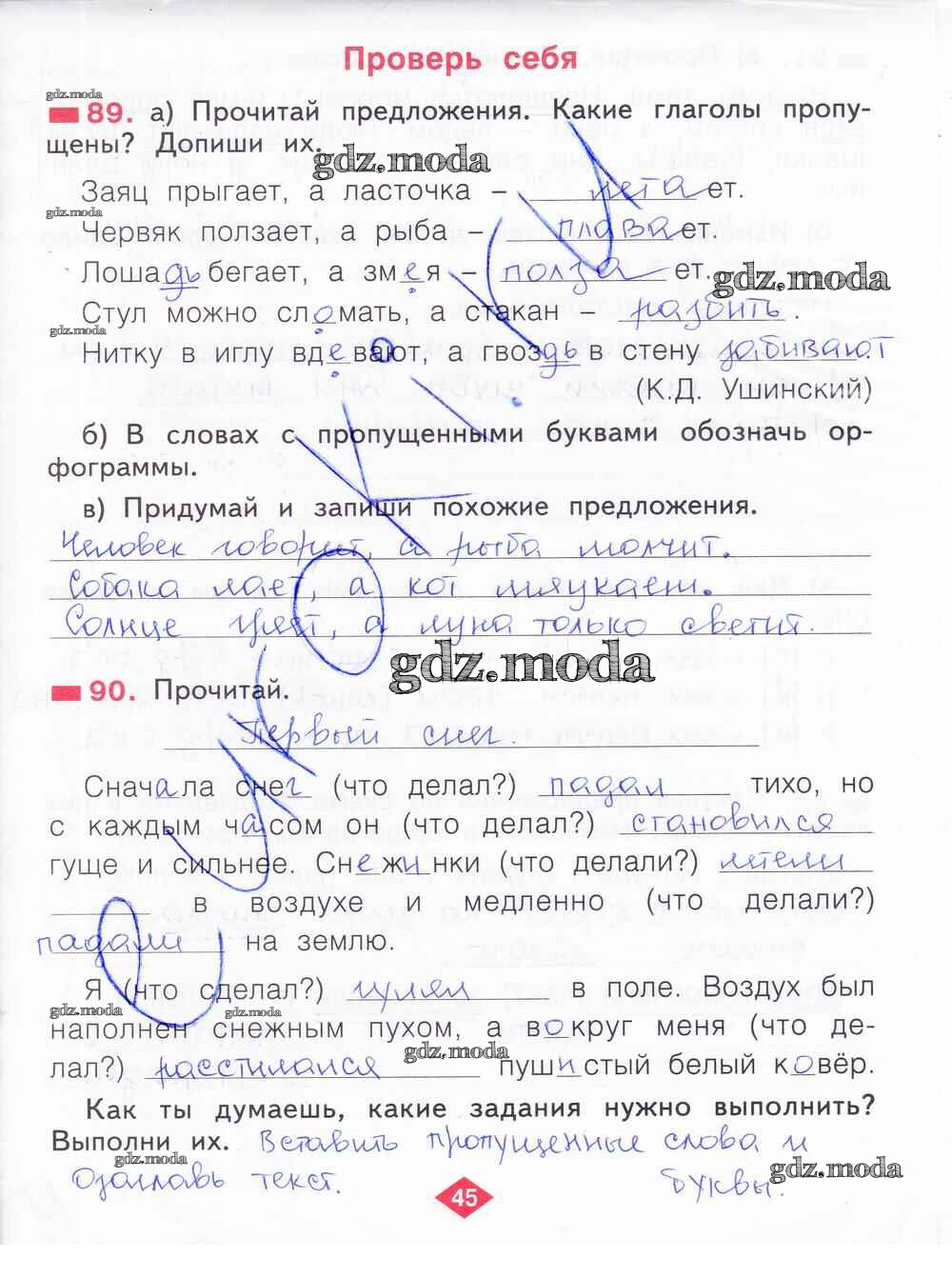 ГДЗ решение к заданию № 45 Русский язык 2 класс рабочая тетрадь Яковлева С.Г. Фёдоров 2015 Часть 1, Часть 2, Часть 3, Часть 4 ФГОС бесплатно на гдз.мода!