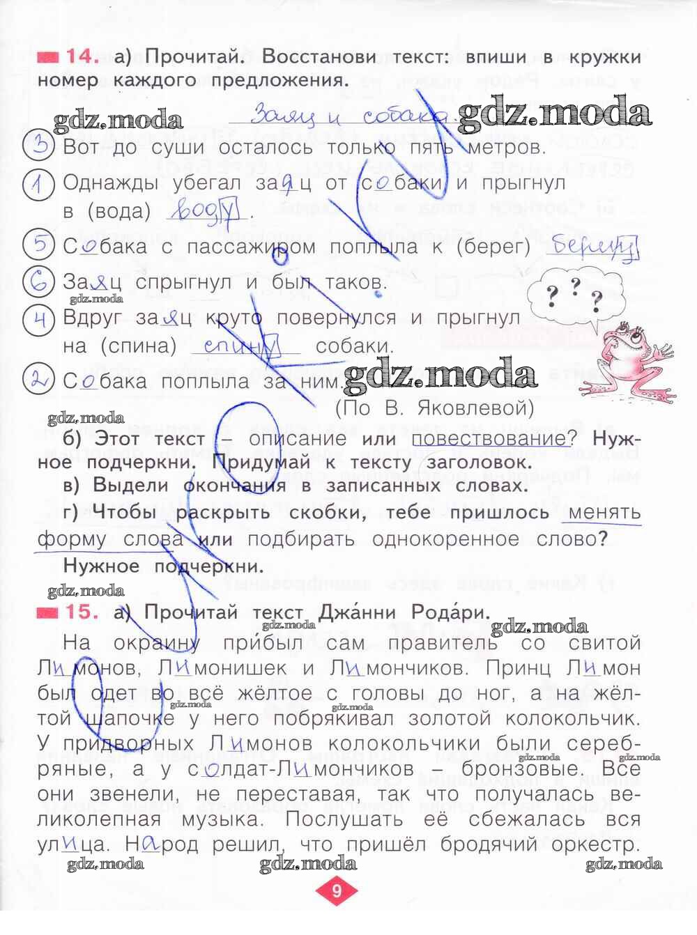 ГДЗ решение к заданию № 9 Русский язык 2 класс рабочая тетрадь Яковлева С.Г. Фёдоров 2015 Часть 1, Часть 2, Часть 3, Часть 4 ФГОС бесплатно на гдз.мода!