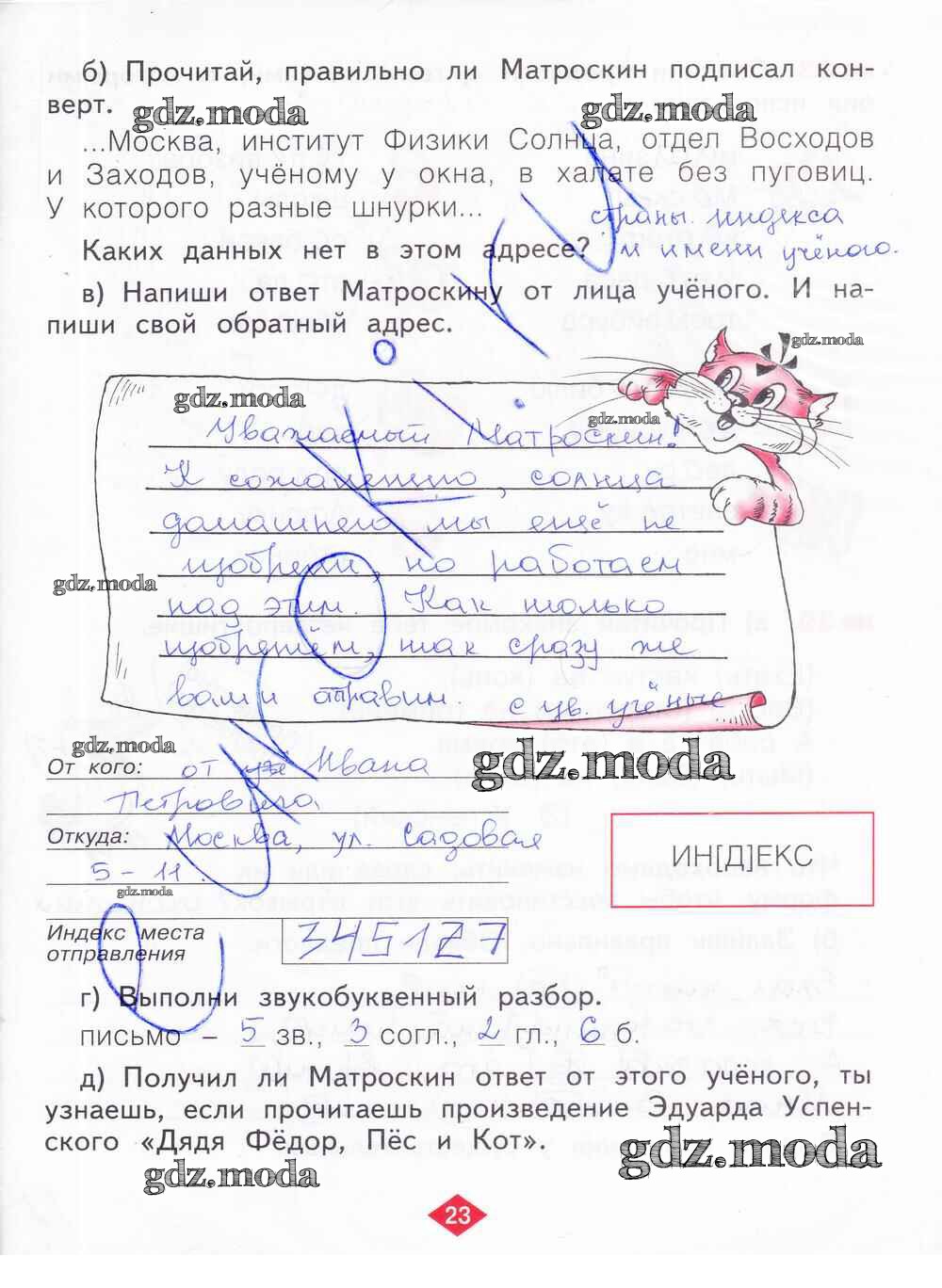 ГДЗ решение к заданию № 23 Русский язык 2 класс рабочая тетрадь Яковлева С.Г. Фёдоров 2015 Часть 1, Часть 2, Часть 3, Часть 4 ФГОС бесплатно на гдз.мода!