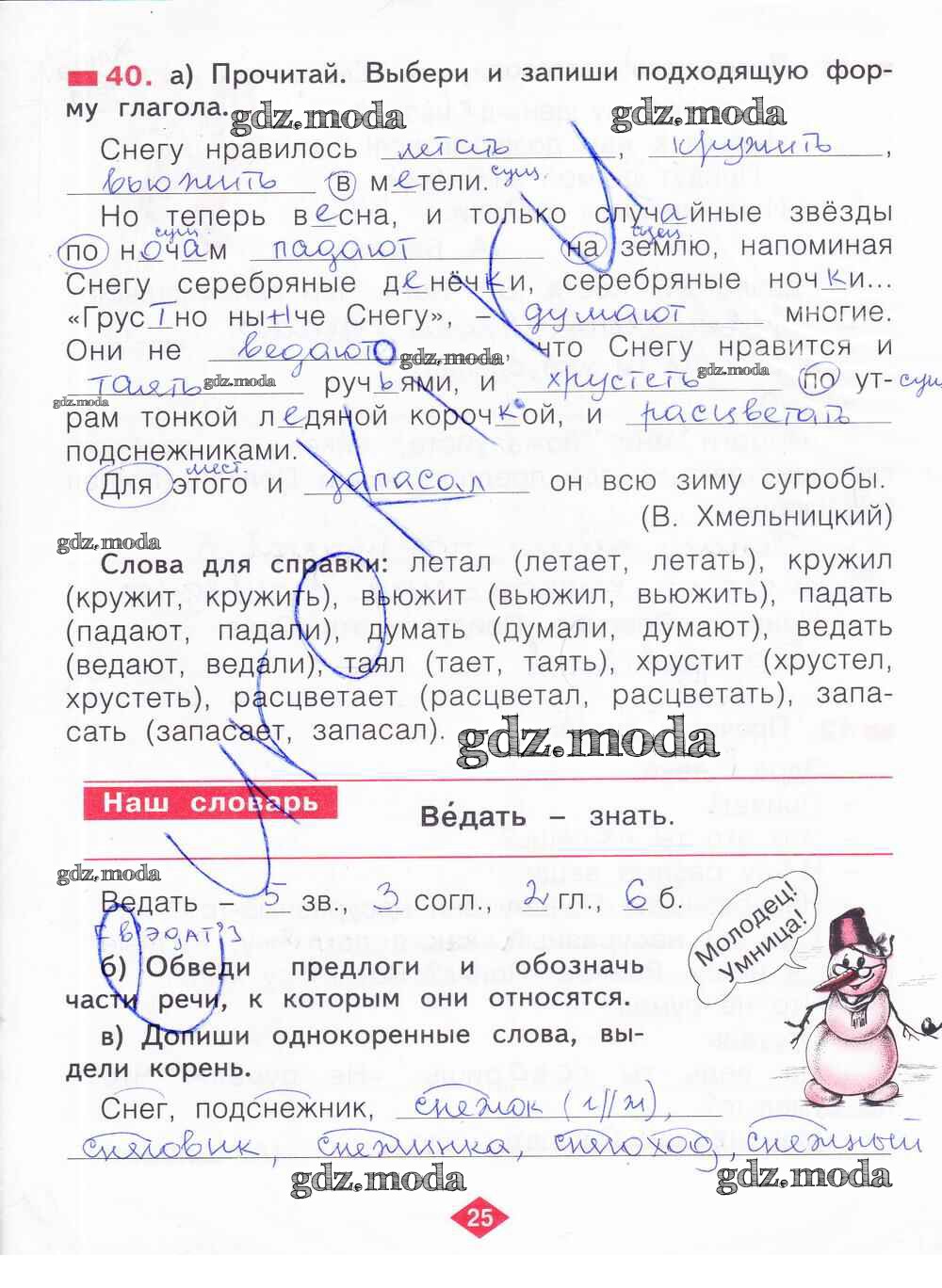 ГДЗ решение к заданию № 25 Русский язык 2 класс рабочая тетрадь Яковлева С.Г. Фёдоров 2015 Часть 1, Часть 2, Часть 3, Часть 4 ФГОС бесплатно на гдз.мода!