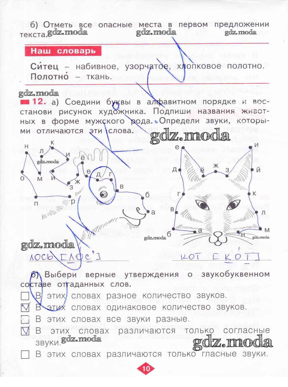 ГДЗ решение к заданию № 10 Русский язык 2 класс рабочая тетрадь Яковлева С.Г. Фёдоров 2015 Часть 1, Часть 2, Часть 3, Часть 4 ФГОС бесплатно на гдз.мода!