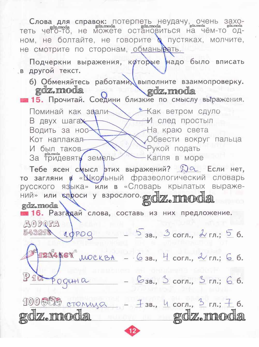 ГДЗ решение к заданию № 12 Русский язык 2 класс рабочая тетрадь Яковлева С.Г. Фёдоров 2015 Часть 1, Часть 2, Часть 3, Часть 4 ФГОС бесплатно на гдз.мода!
