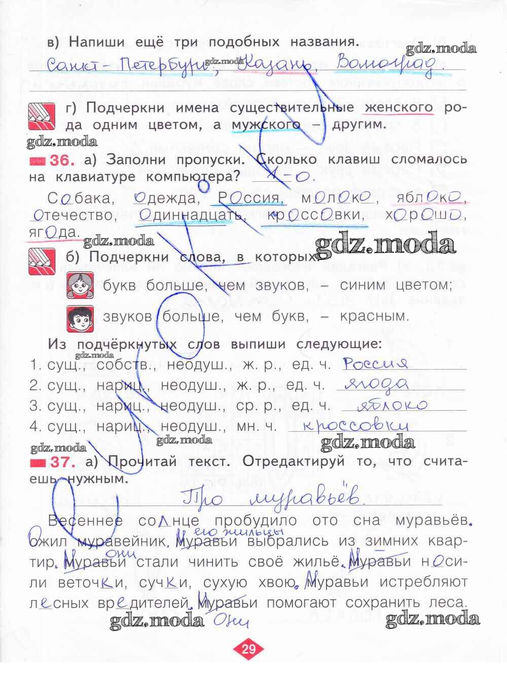 ГДЗ решение к заданию № 29 Русский язык 2 класс рабочая тетрадь Яковлева С.Г. Фёдоров 2015 Часть 1, Часть 2, Часть 3, Часть 4 ФГОС бесплатно на гдз.мода!
