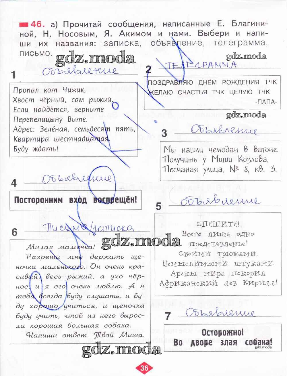 ГДЗ решение к заданию № 36 Русский язык 2 класс рабочая тетрадь Яковлева С.Г. Фёдоров 2015 Часть 1, Часть 2, Часть 3, Часть 4 ФГОС бесплатно на гдз.мода!