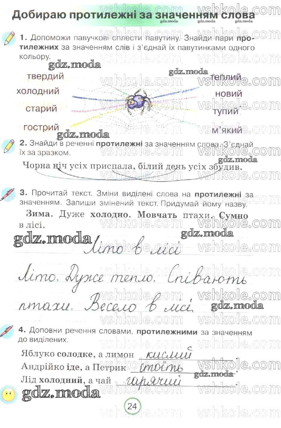ГДЗ решение к заданию № 24 Украинский язык 2 класс рабочая тетрадь Пономарева Орiон 2019 бесплатно на гдз.мода!