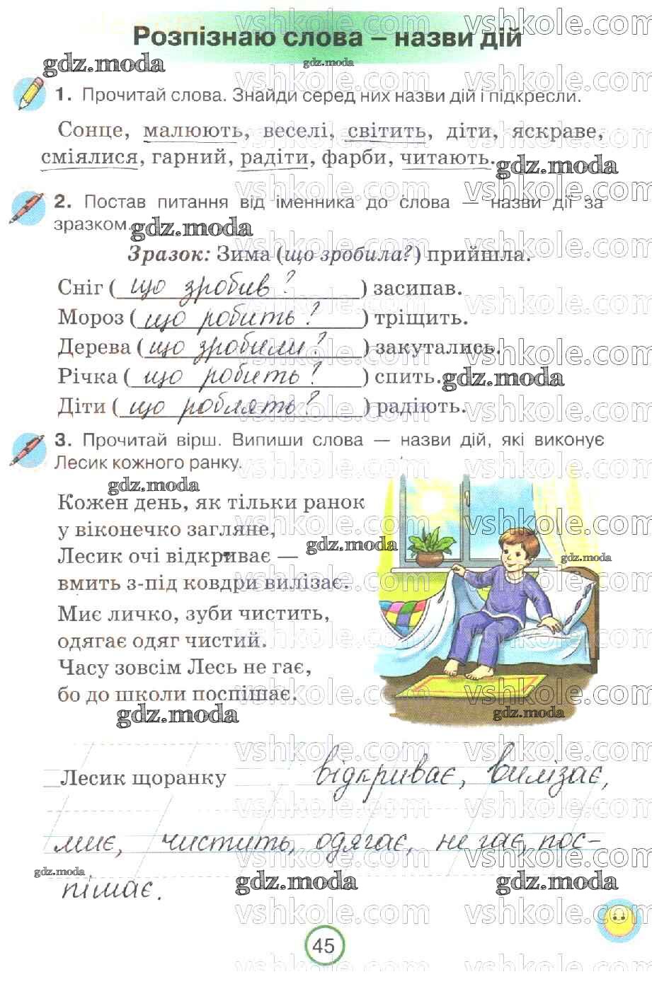 ГДЗ решение к заданию № 45 Украинский язык 2 класс рабочая тетрадь Пономарева Орiон 2019 бесплатно на гдз.мода!