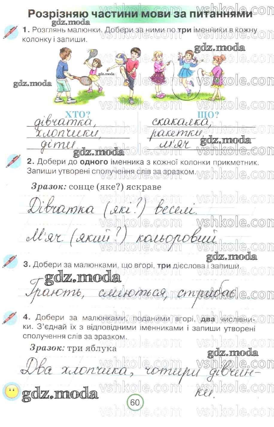 ГДЗ решение к заданию № 60 Украинский язык 2 класс рабочая тетрадь Пономарева Орiон 2019 бесплатно на гдз.мода!