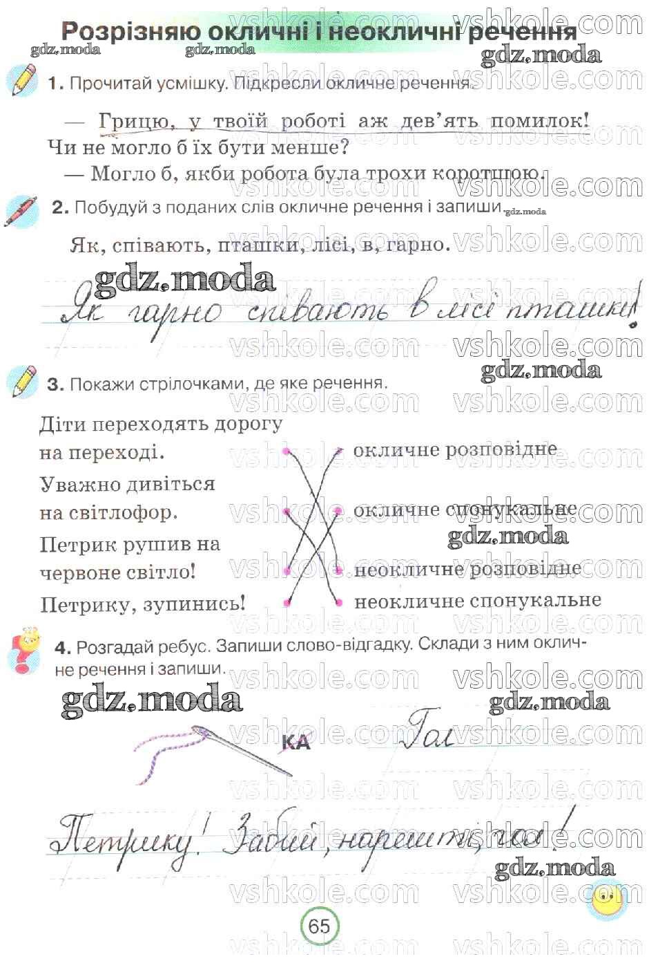ГДЗ решение к заданию № 65 Украинский язык 2 класс рабочая тетрадь Пономарева Орiон 2019 бесплатно на гдз.мода!