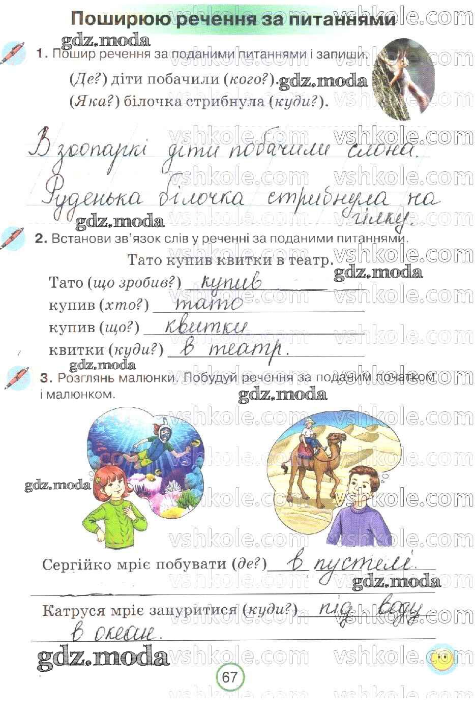 ГДЗ решение к заданию № 67 Украинский язык 2 класс рабочая тетрадь Пономарева Орiон 2019 бесплатно на гдз.мода!