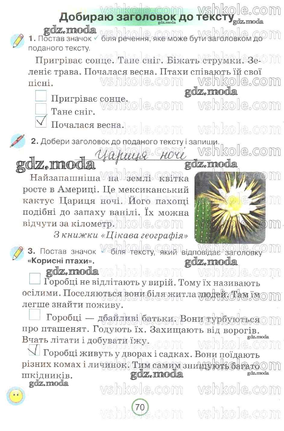ГДЗ решение к заданию № 70 Украинский язык 2 класс рабочая тетрадь Пономарева Орiон 2019 бесплатно на гдз.мода!