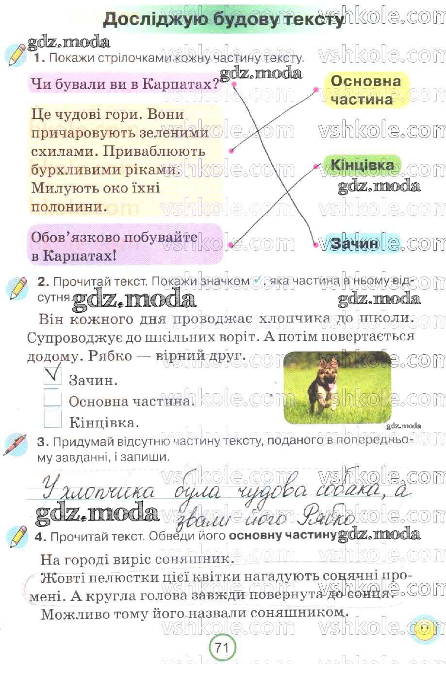 ГДЗ решение к заданию № 71 Украинский язык 2 класс рабочая тетрадь Пономарева Орiон 2019 бесплатно на гдз.мода!