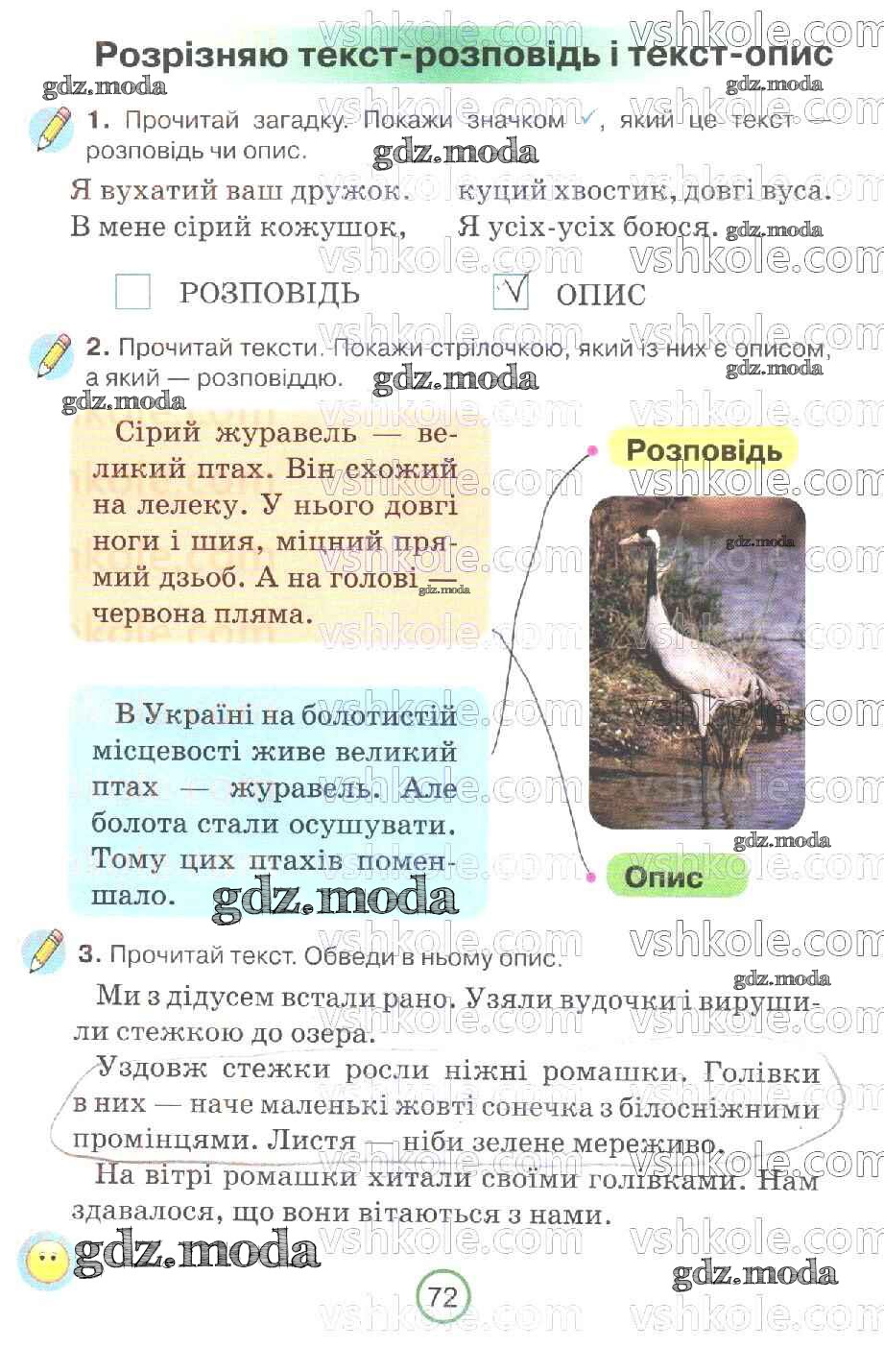 ГДЗ решение к заданию № 72 Украинский язык 2 класс рабочая тетрадь Пономарева Орiон 2019 бесплатно на гдз.мода!