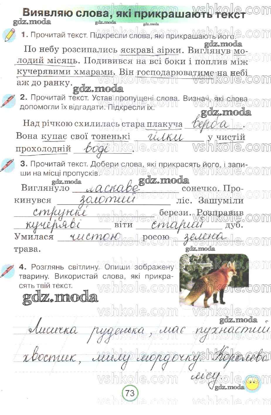 ГДЗ решение к заданию № 73 Украинский язык 2 класс рабочая тетрадь Пономарева Орiон 2019 бесплатно на гдз.мода!
