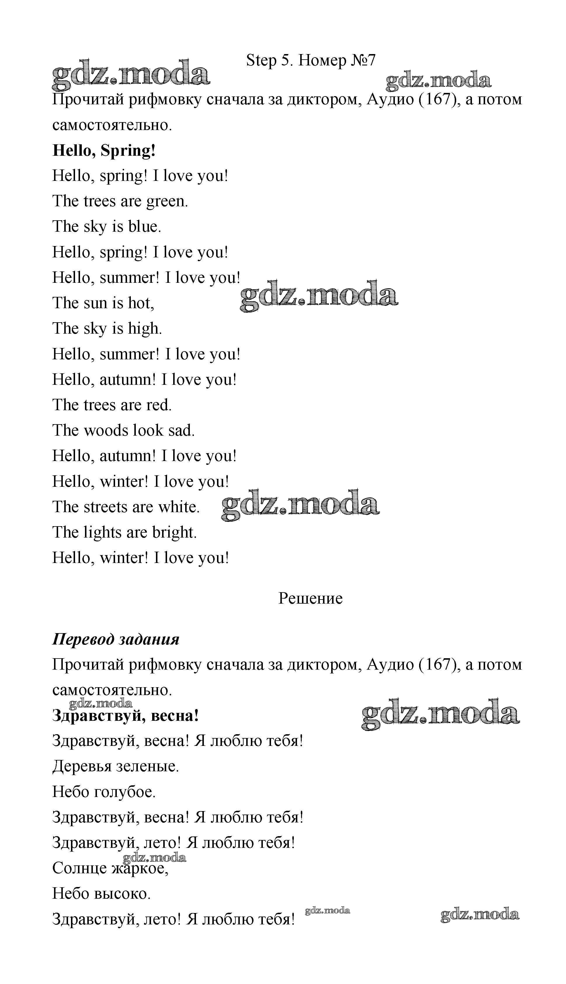 ГДЗ решение к заданию № 7 Английский язык 3 класс Афанасьева Дрофа 2015 бесплатно на гдз.мода!