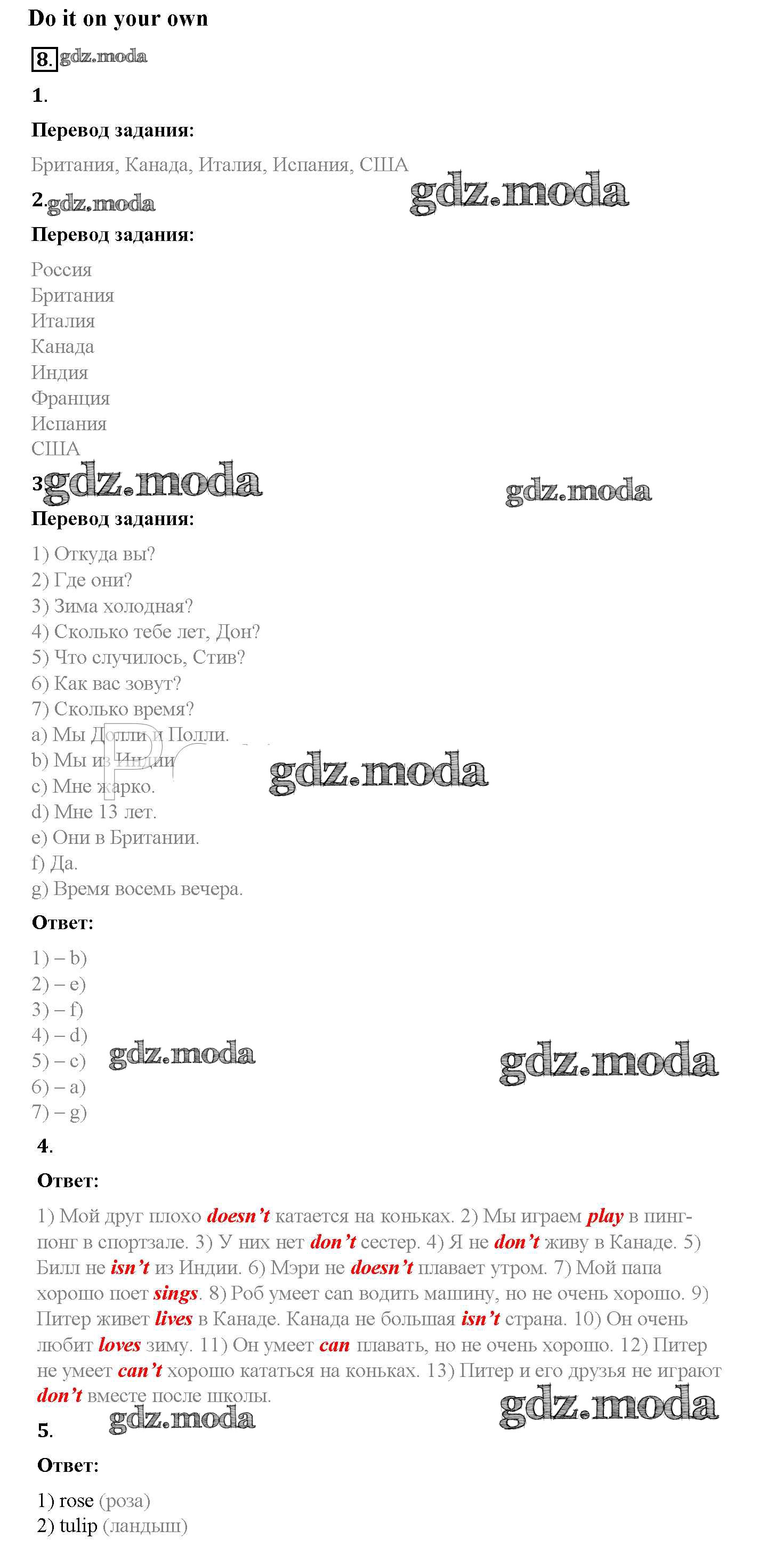 ГДЗ решение к заданию № 8 Английский язык 3 класс Афанасьева Rainbow Дрофа 2015 Часть 1, Часть 2 ФГОС бесплатно на гдз.мода!