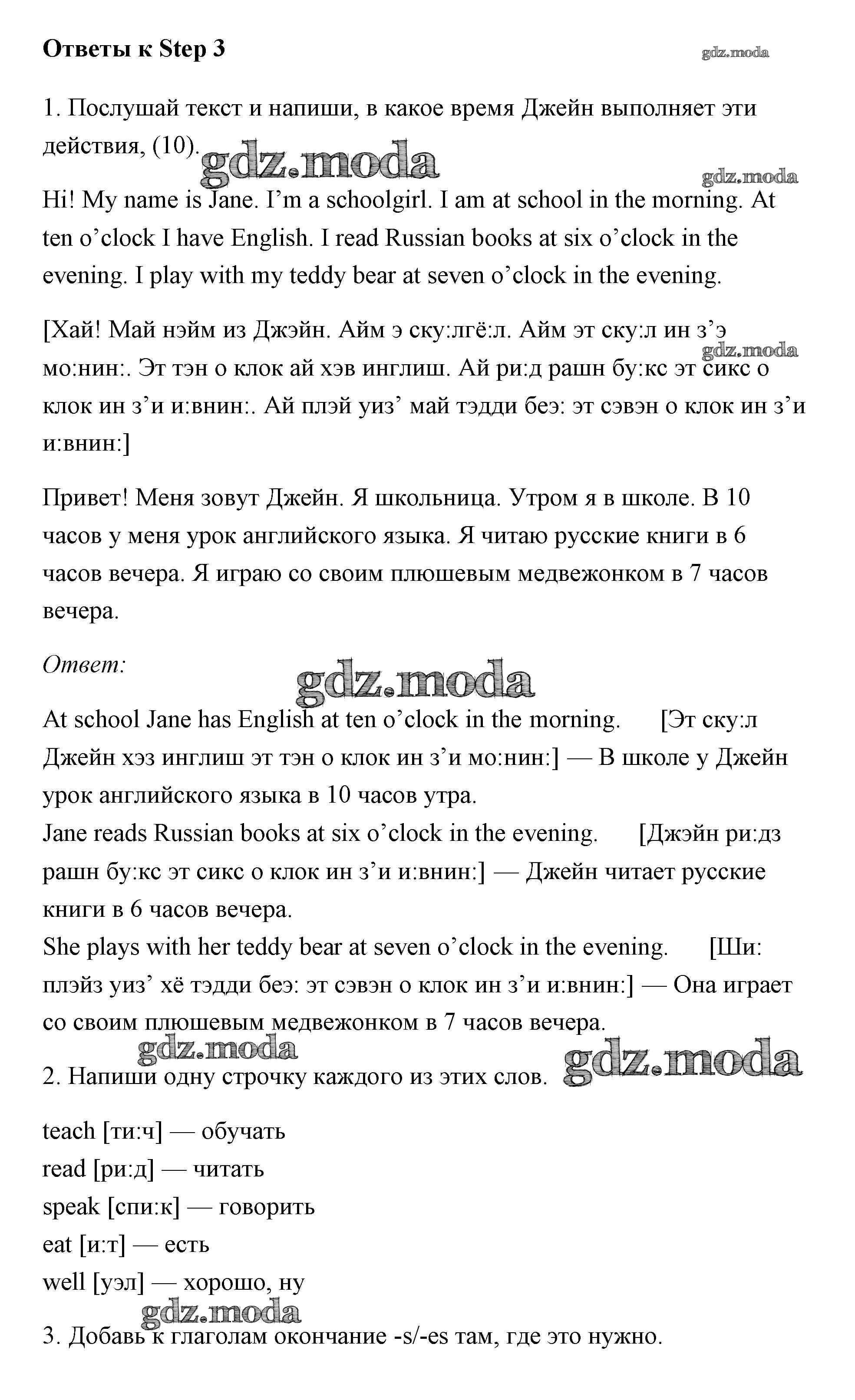 ОТВЕТ на задание № Step 3 Рабочая тетрадь по Английскому языку 3 класс Афанасьева Rainbow