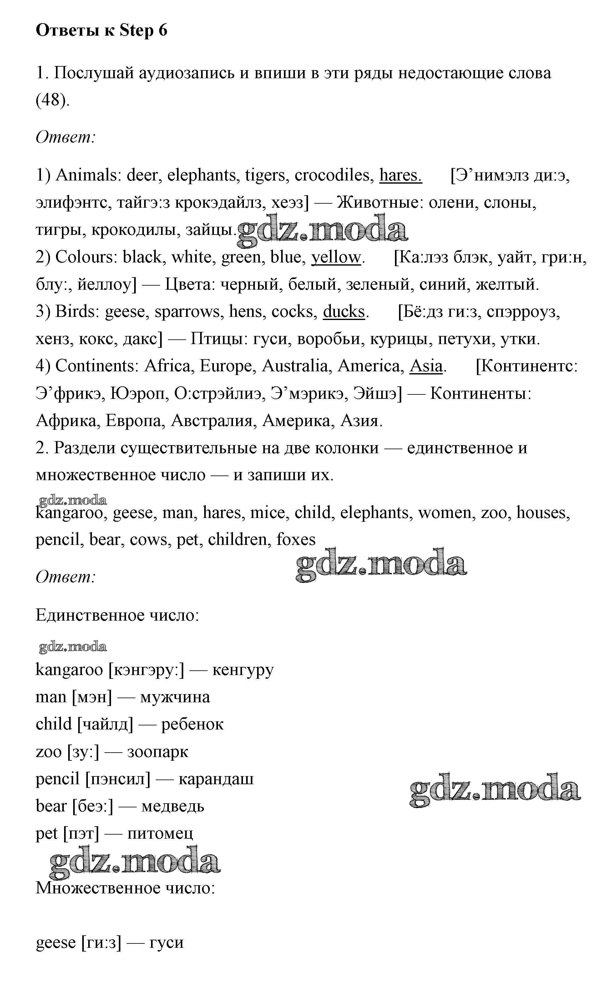 ОТВЕТ на задание № Step 6 Рабочая тетрадь по Английскому языку 3 класс Афанасьева Rainbow