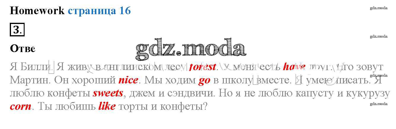 ОТВЕТ на задание № 16 Учебник по Английскому языку 3 класс Биболетова Enjoy English