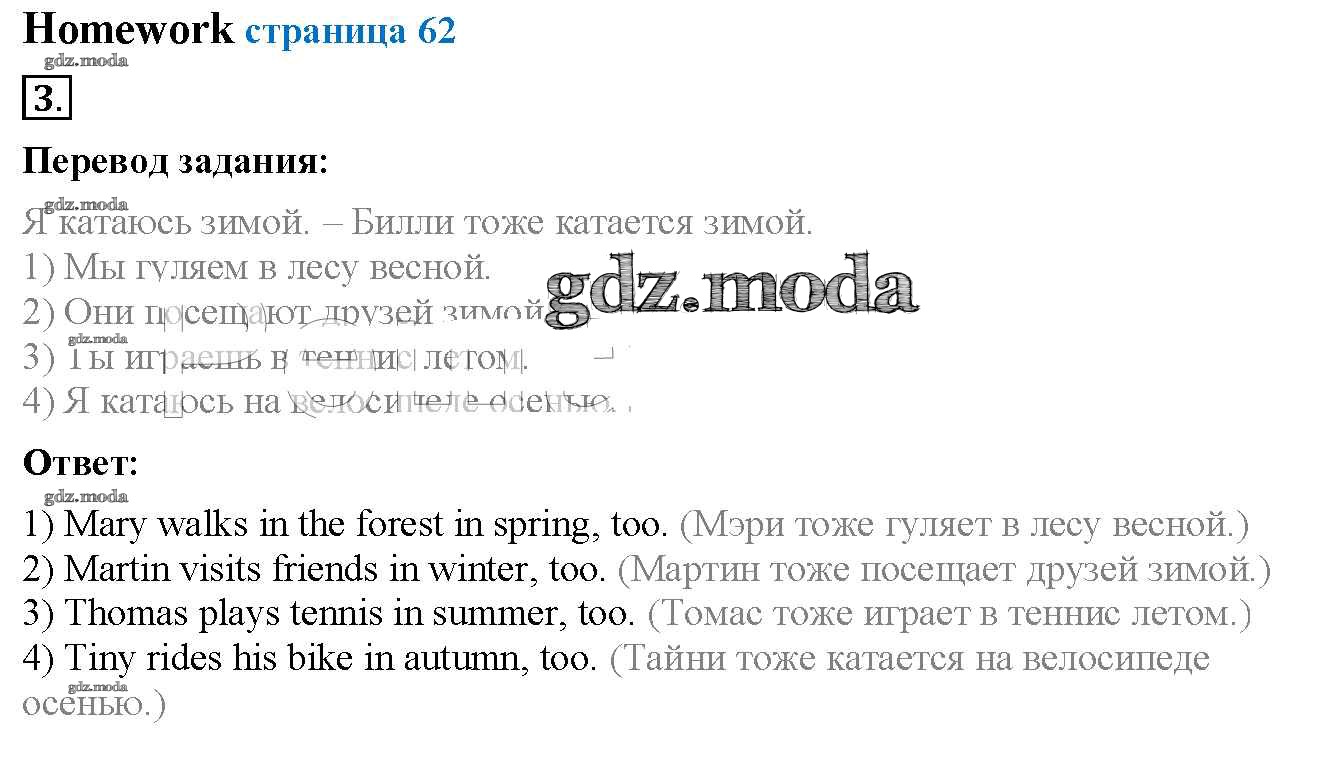 ОТВЕТ на задание № 62 Учебник по Английскому языку 3 класс Биболетова Enjoy English