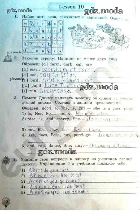 ОТВЕТ на задание № 12 Рабочая тетрадь по Английскому языку 3 класс Биболетова Enjoy English