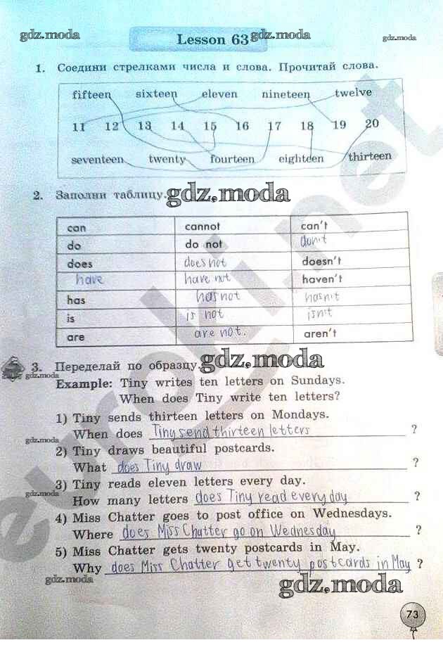 ОТВЕТ на задание № 73 Рабочая тетрадь по Английскому языку 3 класс Биболетова Enjoy English