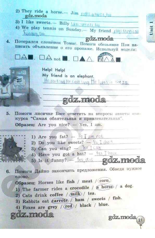 ОТВЕТ на задание № 21 Рабочая тетрадь по Английскому языку 3 класс Биболетова Enjoy English
