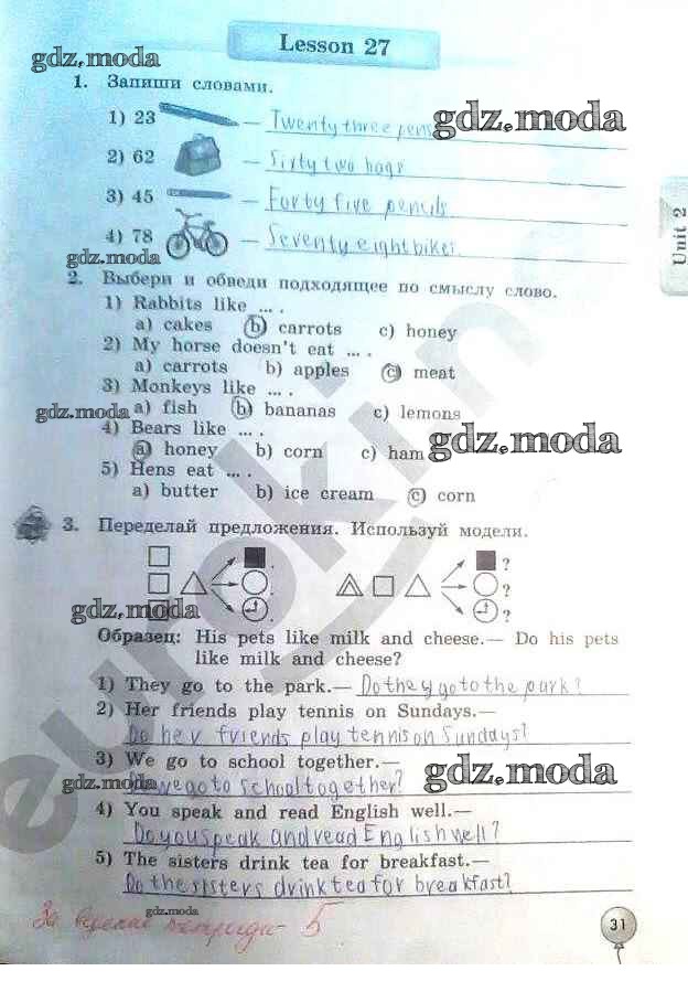 ОТВЕТ на задание № 31 Рабочая тетрадь по Английскому языку 3 класс Биболетова Enjoy English