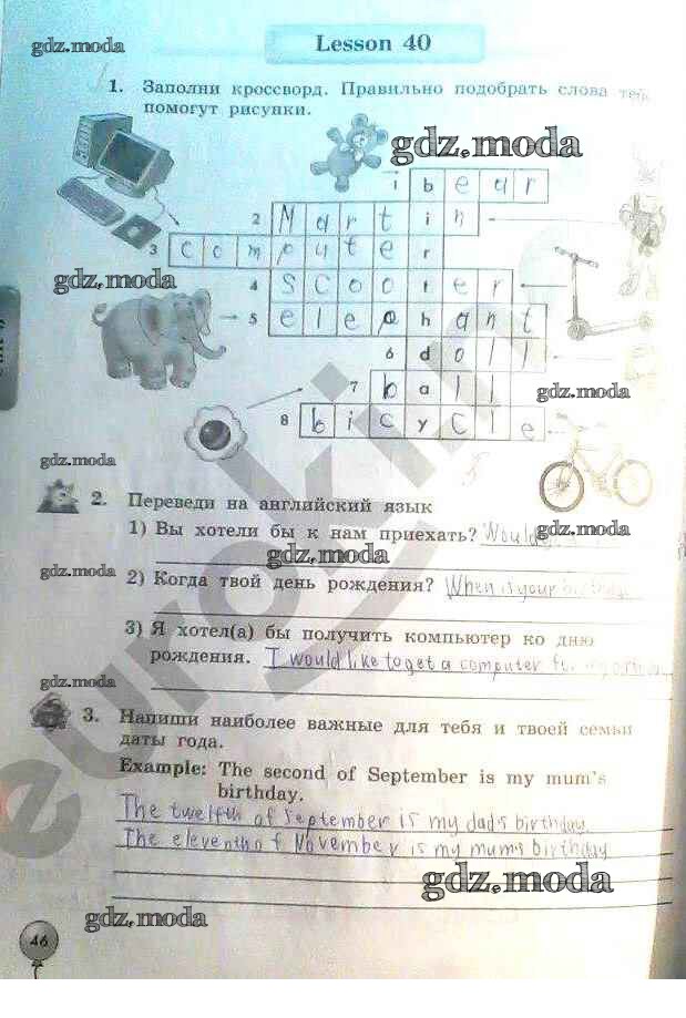 ОТВЕТ на задание № 46 Рабочая тетрадь по Английскому языку 3 класс Биболетова Enjoy English
