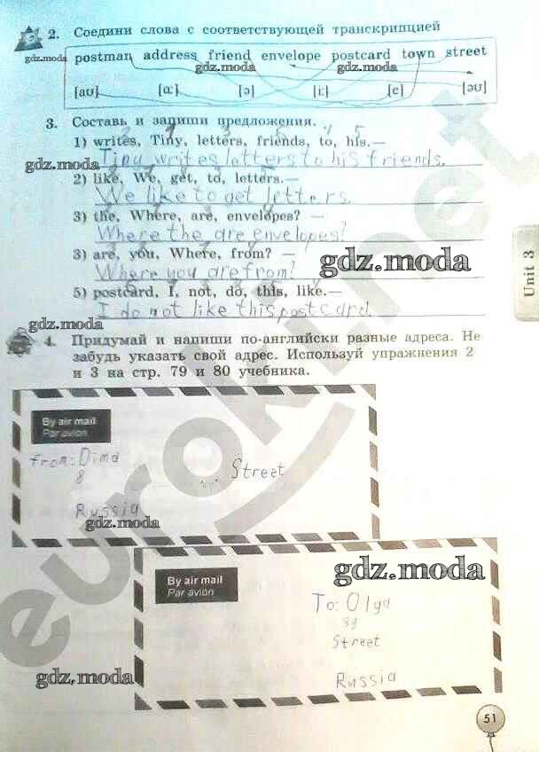 ОТВЕТ на задание № 51 Рабочая тетрадь по Английскому языку 3 класс Биболетова Enjoy English