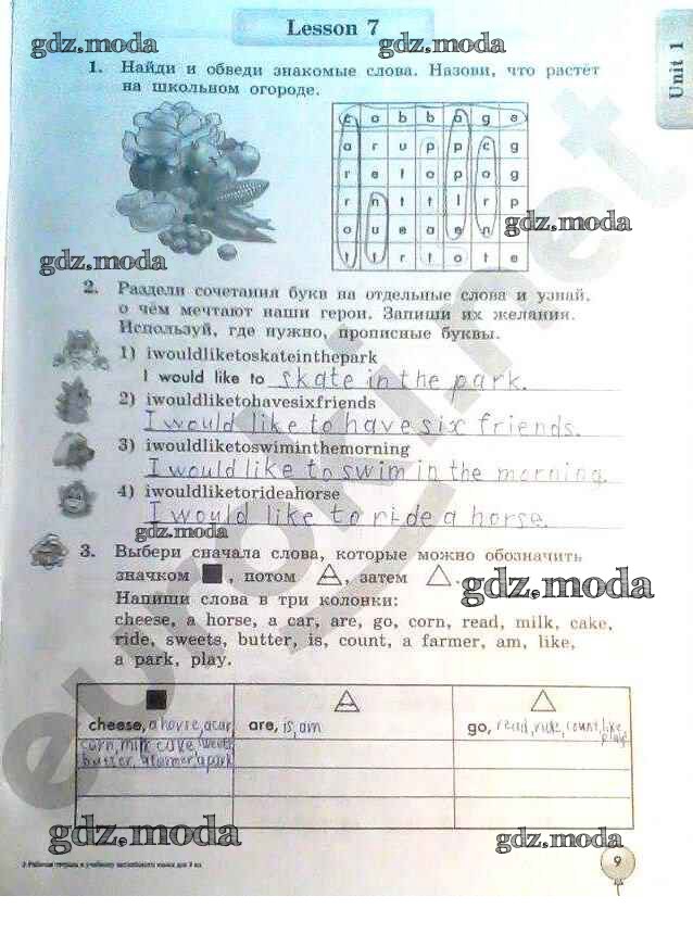 ОТВЕТ на задание № 9 Рабочая тетрадь по Английскому языку 3 класс Биболетова Enjoy English