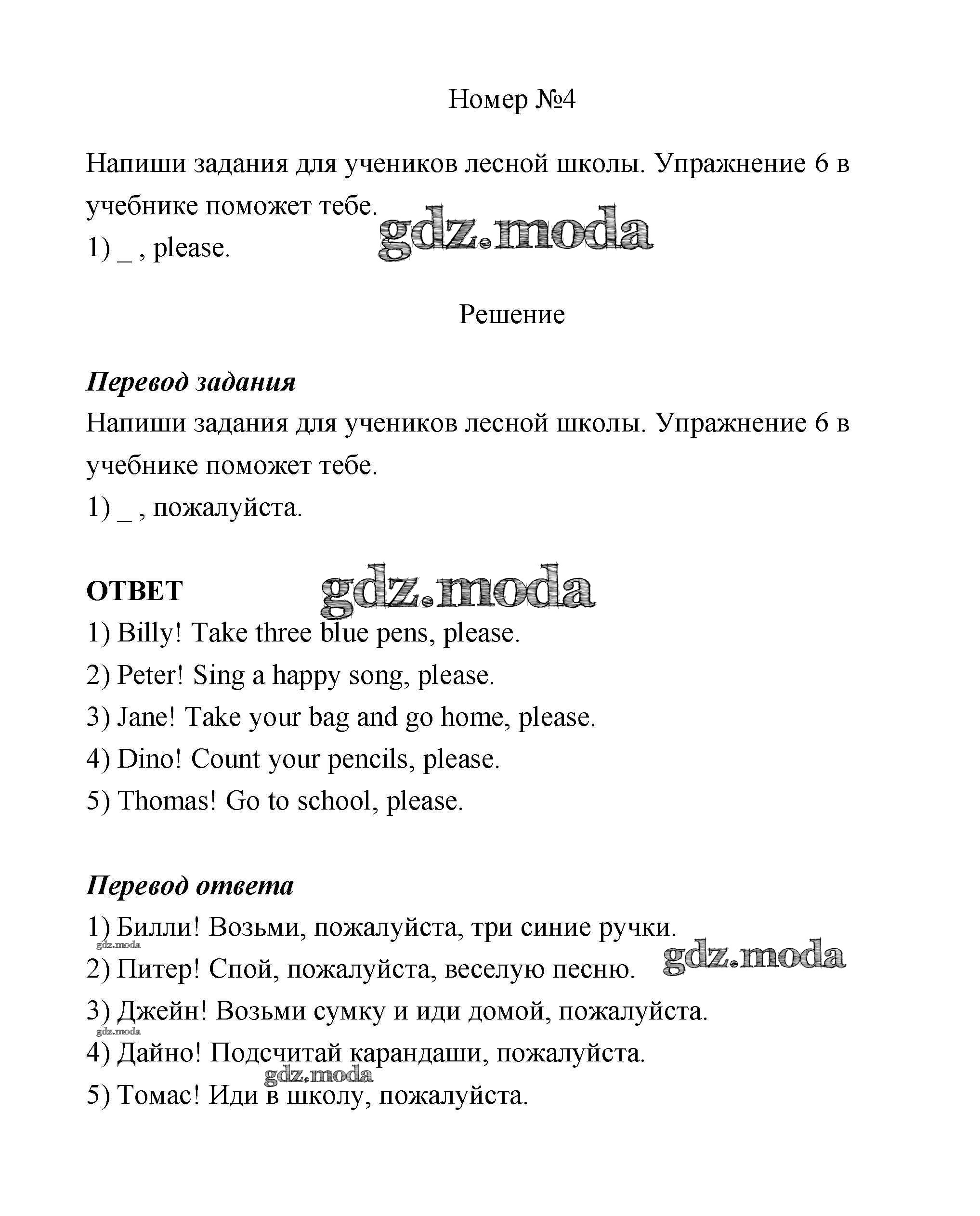 ГДЗ решение к заданию № 4 Английский язык 3 класс рабочая тетрадь Биболетова Аст/Астрель 2016 ФГОС бесплатно на гдз.мода!